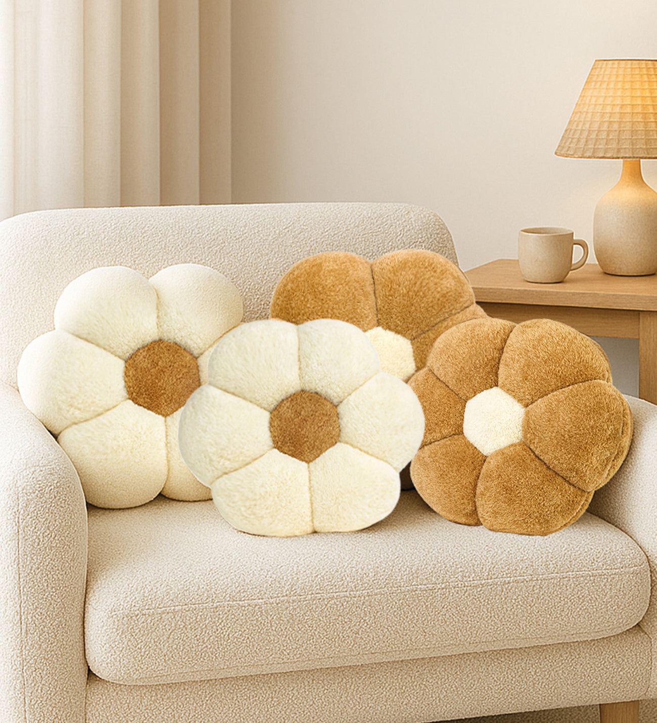 Yumuşacık dokusu ve zarif papatya tasarımıyla Pelüş Papatya Kırlent, oturma odasından çocuk odasına kadar her alana sıcaklık ve neşe katıyor. Evinizde yumuşak, sıcak bir atmosfer oluşturur❤️ Modern, bohem veya minimal dekor tarzlarıyla kolayca uyum sağlar. 4 adet kırlent gönderilmektedir.